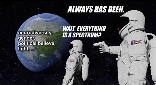 Perhaps everything is a continuum but we just manufacture a spectrum so we can classify people for our own ease of conversation.