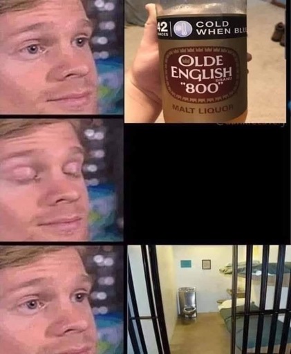 This meme but instead it’s the old school FourLoko when it still had caffeine.
