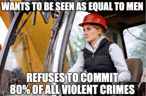 [Excuse me while I “mansplain”] But if women want to increase their violent crimes to match men’s, they need to increase by an additional 300%. This would result in a total increase of violent crimes of 60% more violent crime.