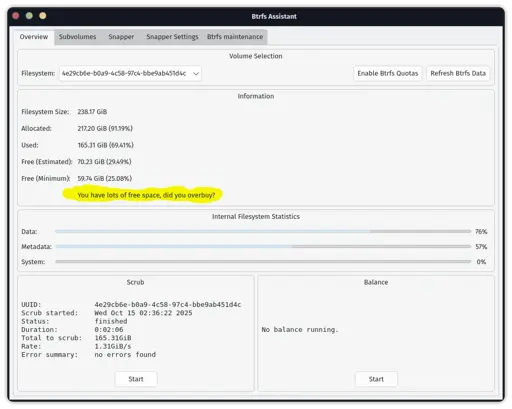 All you need to do is install way too many packages on your root partition, including BTRFS Assistant and you, too can be judged.