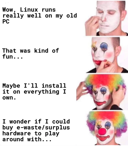 Linux: collects e-waste under the stairs “just in case it’s useful”