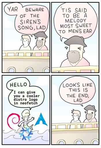 screenfetch(superseded by plain oldfetchbut realised that too late for this comment),cpufetch(a year old, still in active development) andarchey4(likewise) after I did a bit of research on similar programs though, so maybe the sirens got me one way or the other.That’s awesome, but I feel like I need to earn it!