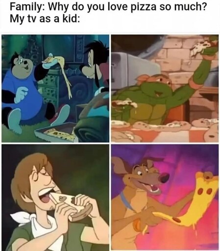 I had a TMNT book that had a recipe for pizza. It was basically english muffins, tomato sauce, cheese, and pepperoni. I made that all the time!