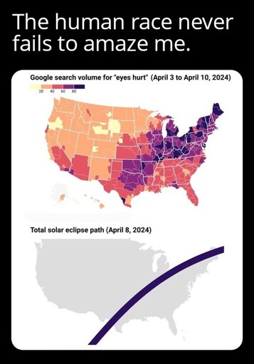 I don’t buy it. The sun is dangerous because you don’t feel pain when it damages your retina. So if people actually googled it, they suffered from nocebo.