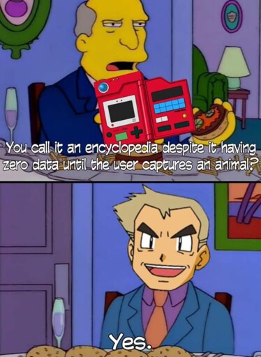 My perception was that he gave him a display to view his encyclopedia. Professor Oak hadn’t logged any Pokemon yet, but then when you threw a PokeBall the Pokemon was transported into the storage somewhere, Professor Oak would study the Pokemon and make the data available to Ash. The issue with my line of thinking is that the transported Pokemon being stored don’t get healed over time, so Professor Oak is like huh, that’s Pikachu is fucked up, oh well I already studied it so no point in caring about it at all.