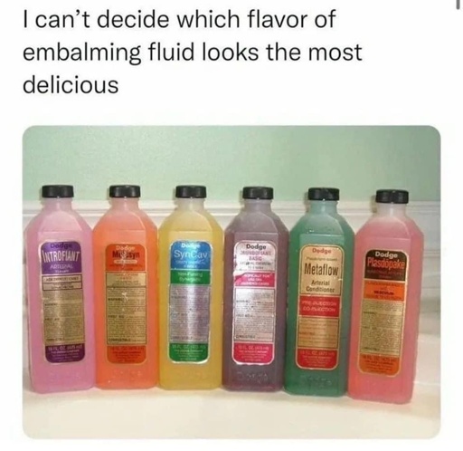 What, there’s no morticians on this platform to explain exactly what each of these does to a body?