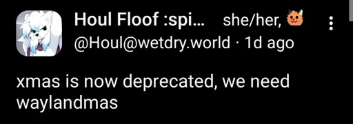 minus-squareWhiskyTangoFoxtrot@piefed.worldlinkfedilinkEnglisharrow-up50·edit-22 days agoI’m going to keep calling it Twittermas, which will make it okay that I continue to provide them with traffic, content and ad revenue.