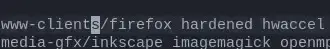 {+X +clang dbus debug eme-free +gmp-autoupdate gnome-shell hardened hwaccel jack jpegxl +jumbo-build libproxy openh264 pgo pulseaudio selinux sndio +system-av1 +system-harfbuzz +system-icu +system-jpeg +system-libevent +system-libvpx system-pipewire system-png +system-webp +telemetry test valgrind wasm-sandbox wayland wifi L10N="ach af an ar ast az be bg bn br bs ca ca-valencia cak cs cy da de dsb el en-CA en-GB eo es-AR es-CL es-ES es-MX et eu fa ff fi fr fur fy ga gd gl gn gu he hi hr hsb hu hy ia id is it ja ka kab kk km kn ko lij lt lv mk mr ms my nb ne nl nn oc pa pl pt-BR pt-PT rm ro ru sc sco si sk skr sl son sq sr sv szl ta te th tl tr trs uk ur uz vi xh zh-CN zh-TW" LLVM_SLOT="19 20 +21"}