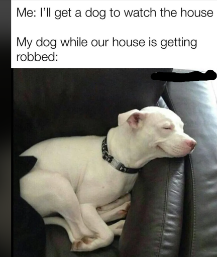 At least, your dog just sleeps. My would actually help the robbers. 😂