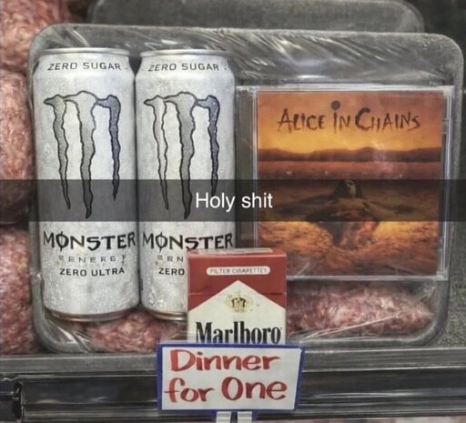 Can’t believe this dinner for one combo with music cd, cigarettes and energy drink isn’t real