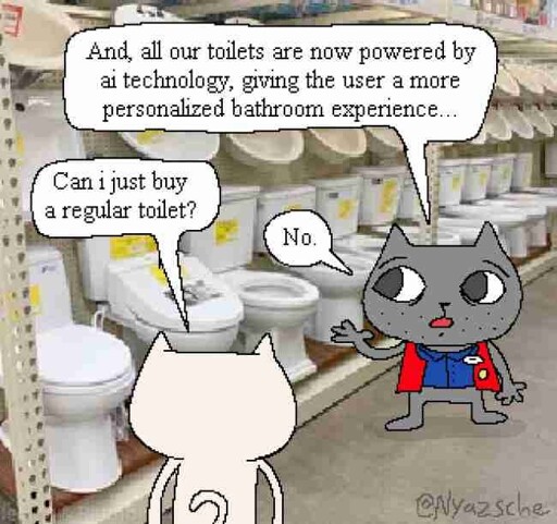 minus-squaremerc@sh.itjust.workslinkfedilinkarrow-up3·7 days agoFor example, instead of a lever to flush, you get a button. If the software isn’t up to date, the button won’t work.