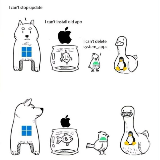 Linux needs to be a Canadian goose. Those cobra chickens are just fine when you let them do their thing and ignore all the shit left behind cause you’re not sure it’s important to the planet, but the moment you start to mess with it and you don’t know what you’re doing they will fuck you up!