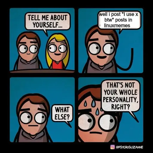 NarendraCzar@lemmy.dbzer0.com to linuxmemes@lemmy.world · 1 year agor/linuxmemes in a nutshelllemmy.dbzer0.comimagemessage-square2fedilinkarrow-up14arrow-down10